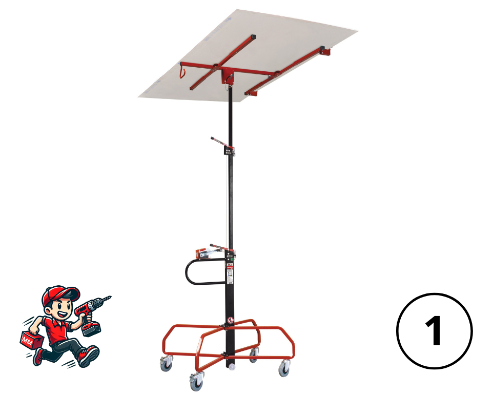 1 - Plafondplaten lift, max. hoogte: 3,3 mtr, met verlengstuk 3,8 mtr, max. hefvermogen: 65 kg